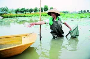 “幸運(yùn)的游客可以在游船時看到漁民捉魚的情景。”蓮花水鄉(xiāng)的工作人員告訴記者,現(xiàn)在景區(qū)共有10條疍家漁船,撐船者都是當(dāng)?shù)貪O民,閑暇時他們會在湖中捉魚,頗有江南魚米鄉(xiāng)之感。